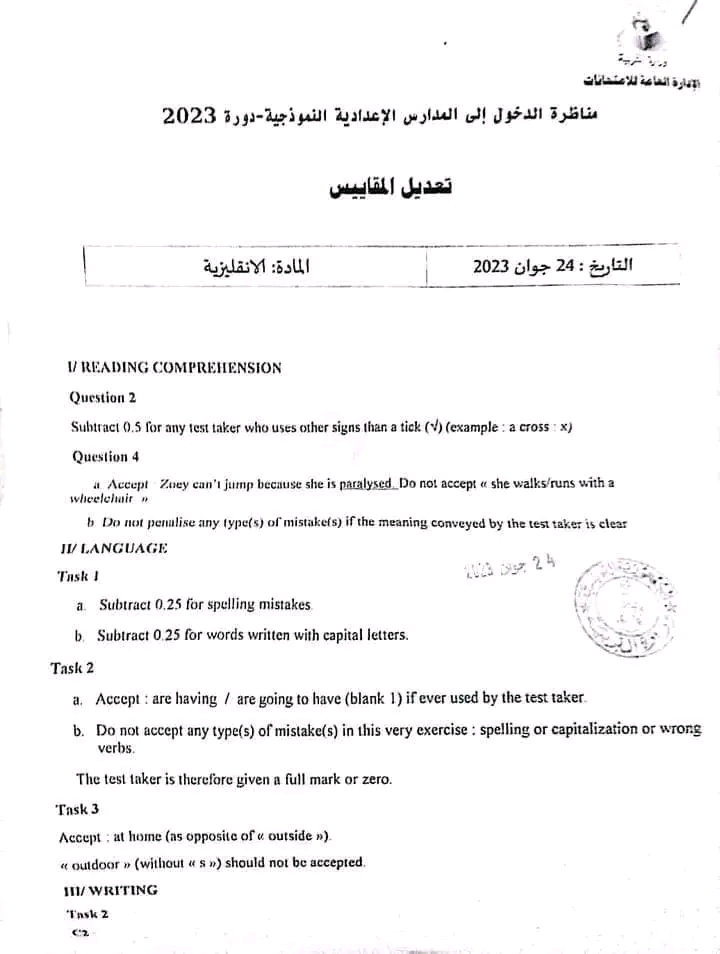 يليها الإصلاح الرسمي لنفس الامتحان الذي طرح في مناظرة سنة 2023.