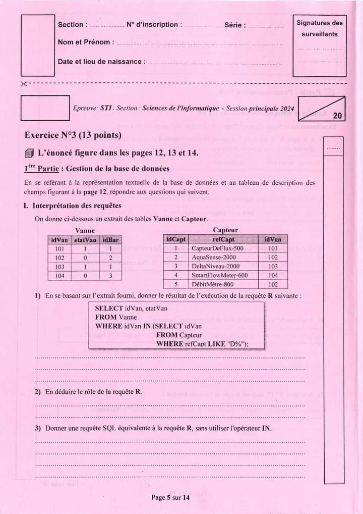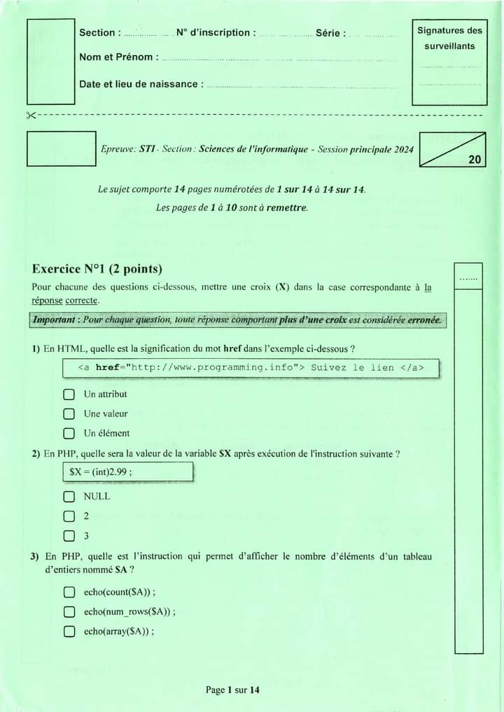 اليكم امتحان STI أنظمة وتكنولوجيات المعلوماتية – بكالوريا علوم الاعلامية 2024 في تونس. و امتحان sti بكالوريا 2024 علوم اعلامية اجري يوم الثلاثاء 11 جوان 2024 .