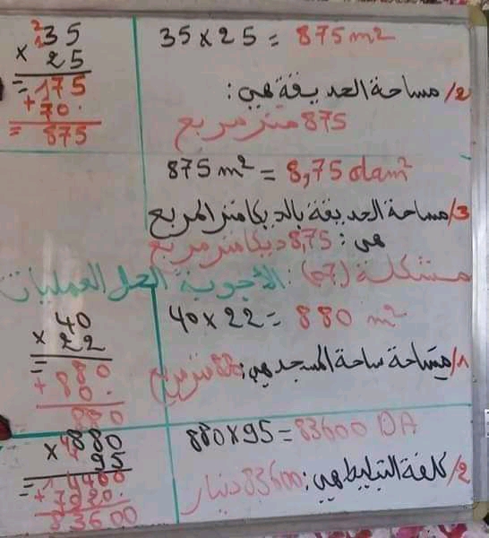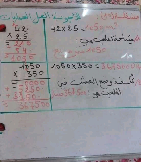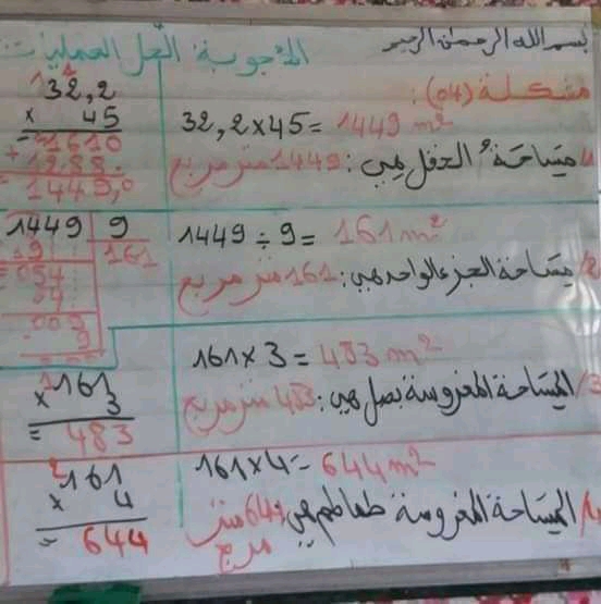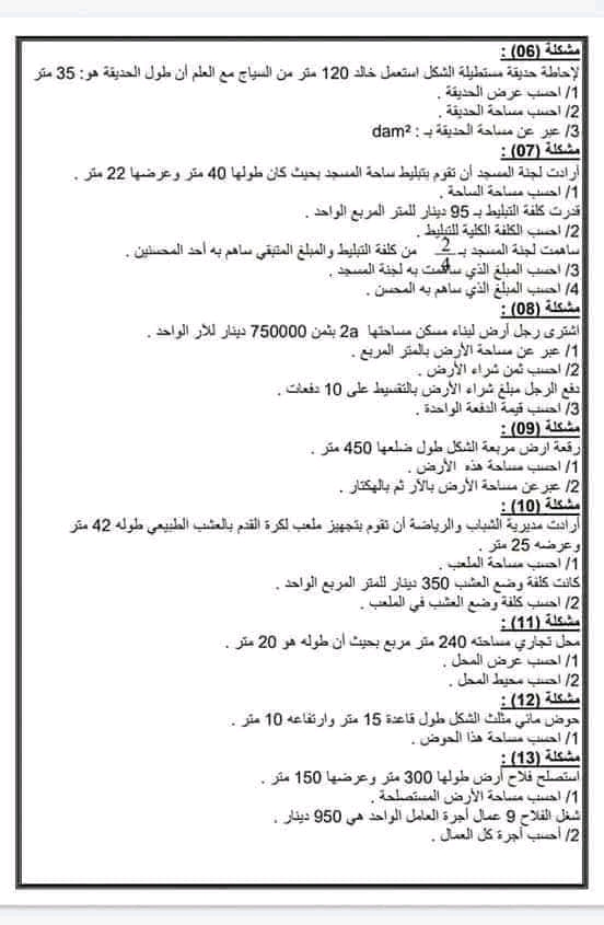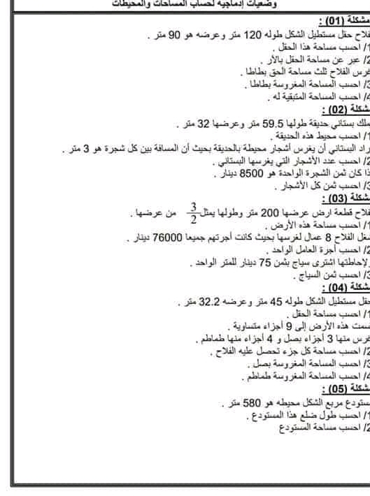 تمارين و اصلاح حساب المساحة و المحيط سنة خامسة و مراجعة رياضيات سنة سادسة ابتدائي .
