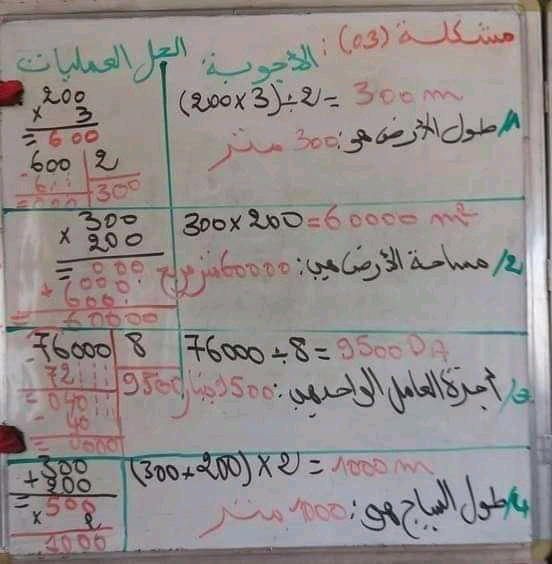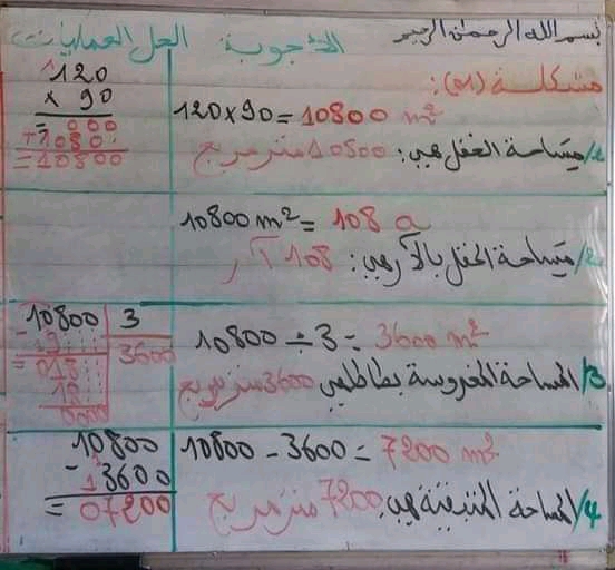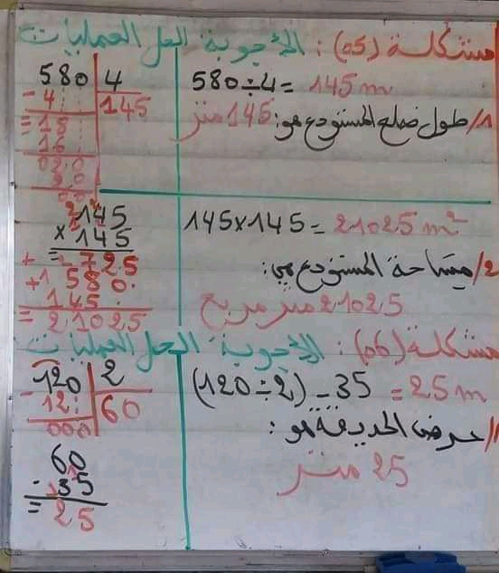 اصلاح المسائل حساب المساحة و المحيط سنة 5 ابتدائي