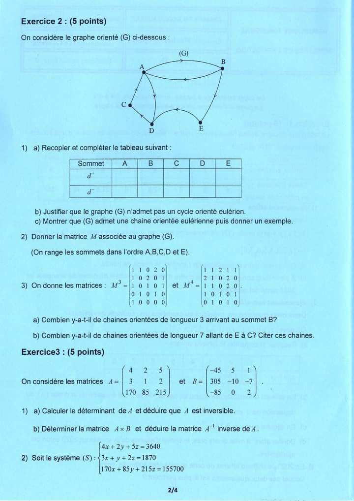 اليكم امتحان رياضيات شعبة الإقتصاد والتصرف – الدورة الرئيسية للبكالوريا 2024 و الذي اجري يوم الجمعة 7 جوان 2024. و نص امتحان رياضيات بكالوريا 2024 اقتصاد وتصرف هو التالي.